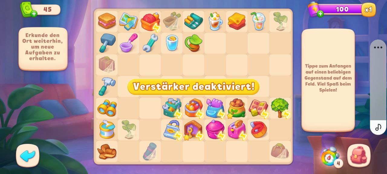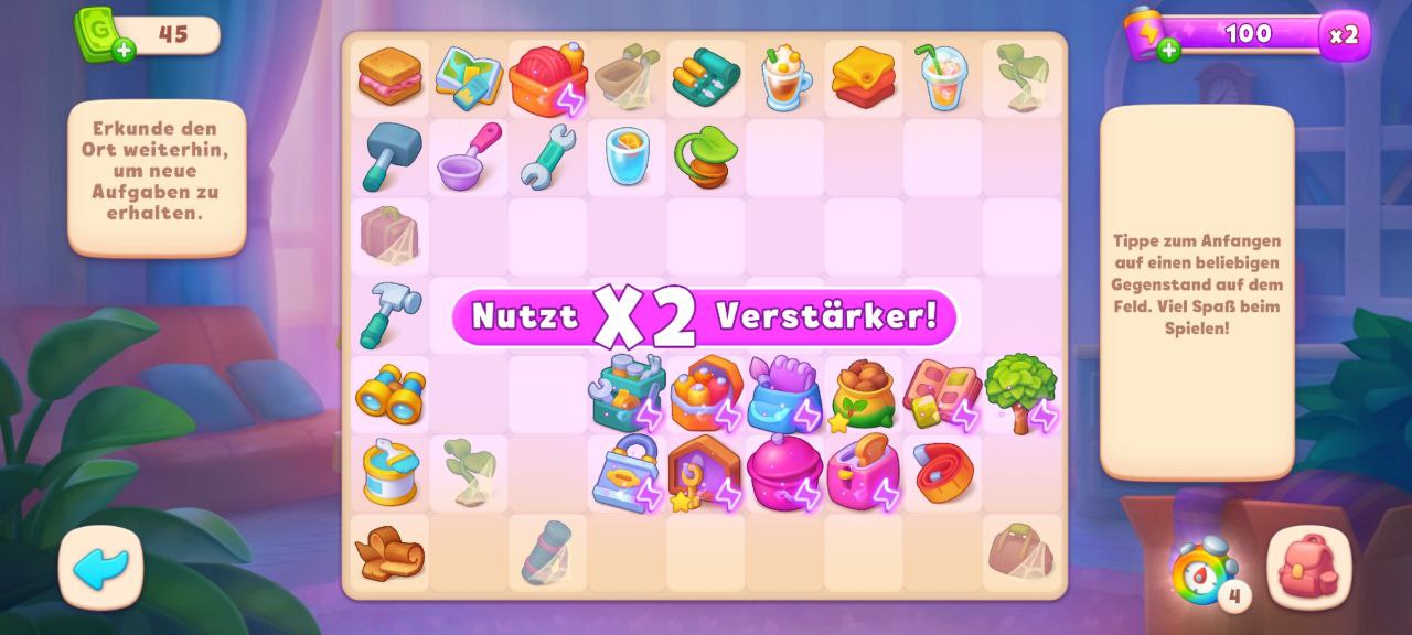 Wenn der Verstärker aktiv ist, gibst du außerdem doppelt so viele Energiepunkte aus. Es lohnt sich jedoch: Je höher der Multiplikator, desto höher ist das Level des generierten Gegenstands, sodass du Aufgaben schneller erledigen kannst. 😉