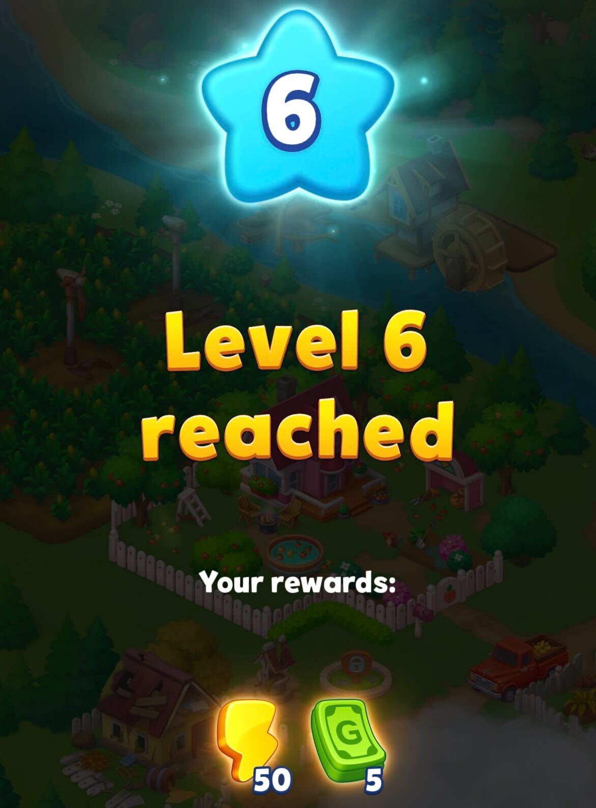 Experience points raise your level. The higher your level, the more possibilities open up: new areas of the farm, access to more buildings, and rewarding bonuses such as merge energy  and banknotes .