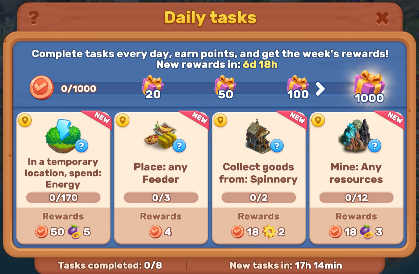 To make sure you get the final reward, try to complete tasks consistently throughout the week and keep an eye on the timer above the reward bar, which shows how much time is left until the next reset.