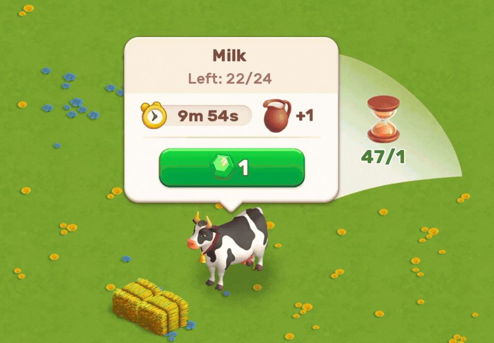 Skillful Inuits are glad to share with you some secrets of using Hourglasses! Tap an animal and drag the hourglass onto it. After that you will receive the resource immediately. But remember, animals should have enough food to produce milk, eggs etc. Enjoy farming :)
