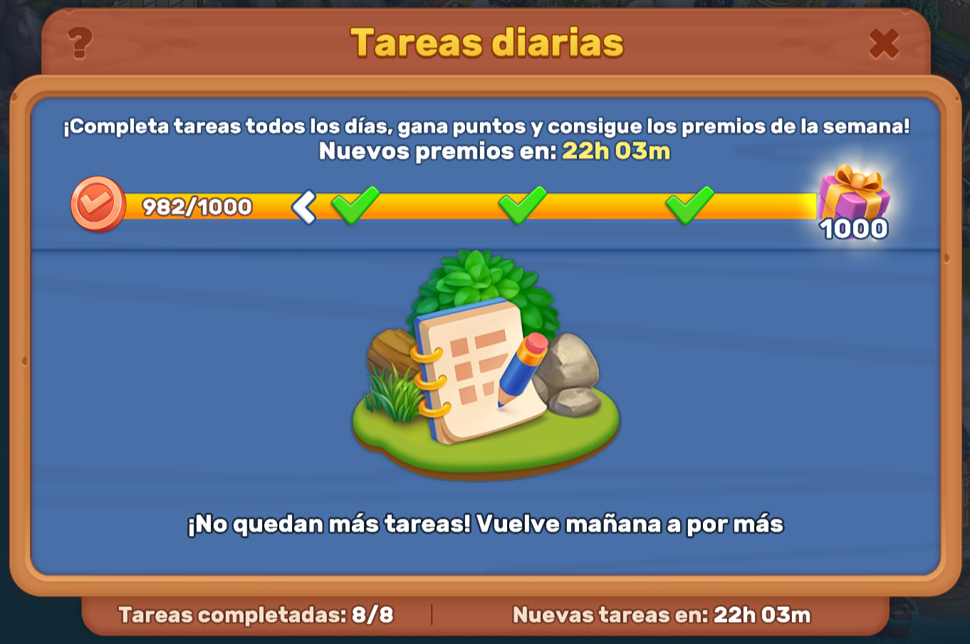 La cantidad de tareas que puedes recibir cada semana es limitada. Si no alcanzaste los 1.000 puntos, significa que algunos días no completaste suficientes Tareas diarias.