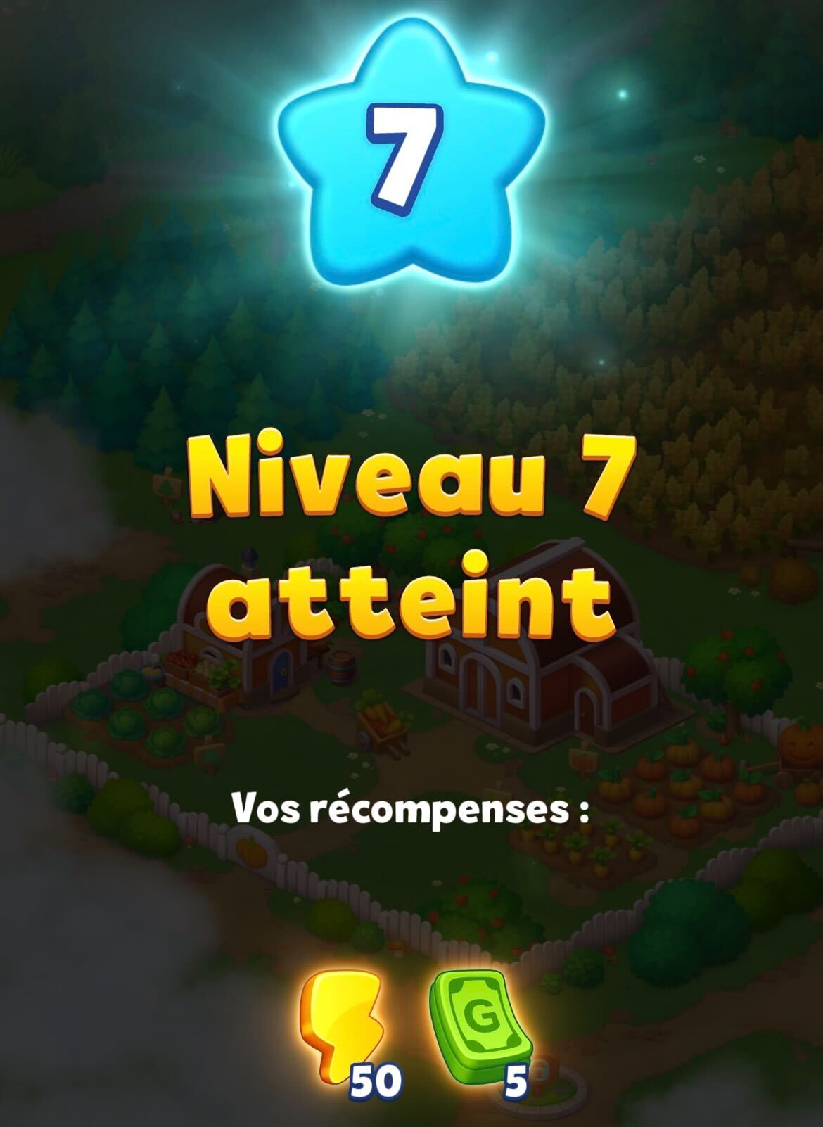 Les points d’expérience augmentent votre niveau. Plus votre niveau est élevé, plus de possibilités s’ouvrent : de nouvelles zones de la ferme, l’accès à plus de bâtiments et des récompenses intéressantes comme l’énergie de fusion