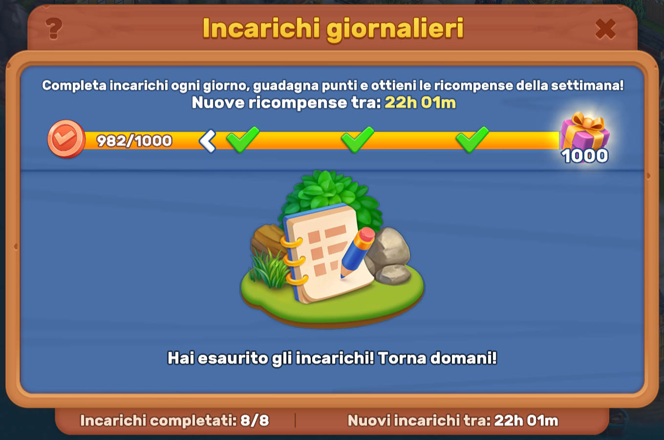 Per assicurarti di ricevere la ricompensa finale, prova a completare incarichi con costanza per tutta la settimana. Così avrai abbastanza opportunità per raggiungere i 1.000 punti.