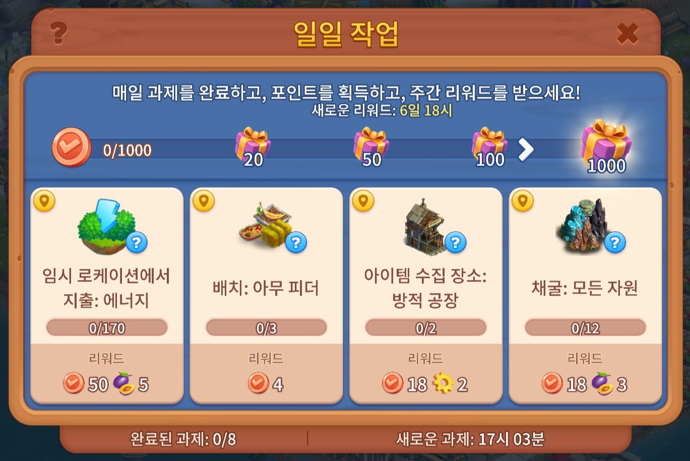 포인트가 초기화된 걸 발견했다면 걱정하지 마세요.매주 새로운 게임 주간이 시작될 때 진행 바가 리셋돼요.포인트는 다음 주로 이월되지 않으며, 1,000포인트를 달성했든 안 했든 7일마다 진행 바는 초기화돼요.