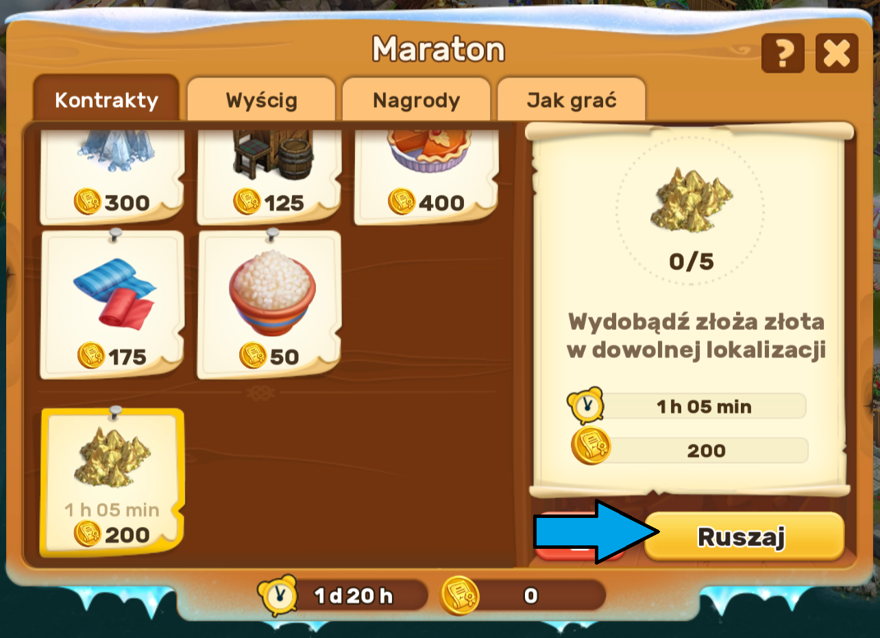 Ziemie Klondike są pełne różnych zasobów. Aby mieć pewność, że zużywasz Energię na właściwy zasób, skorzystaj z podpowiedzi. Stuknij „Ruszaj”, aby zobaczyć, gdzie znajduje się właściwy surowiec.