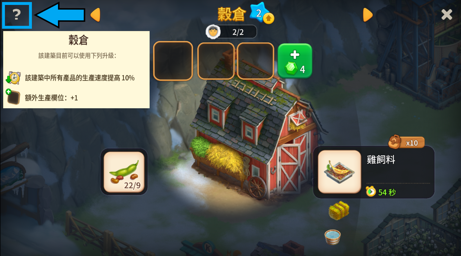 若想查看目前該建築已解鎖的所有升級,請點擊畫面左上角的大問號「?」。