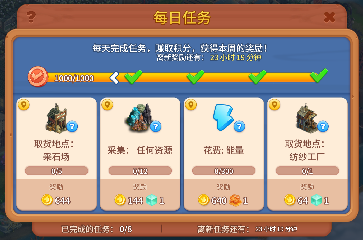 当你达到 1000 分并领取大奖后,继续完成任务将不会再影响进度条。任务可能仍然可用,但直到下一个周期开始前,不会再获得积分。