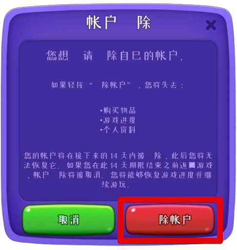 - 确认之后,在删除帐户的 14 天内,您将无法玩游戏;